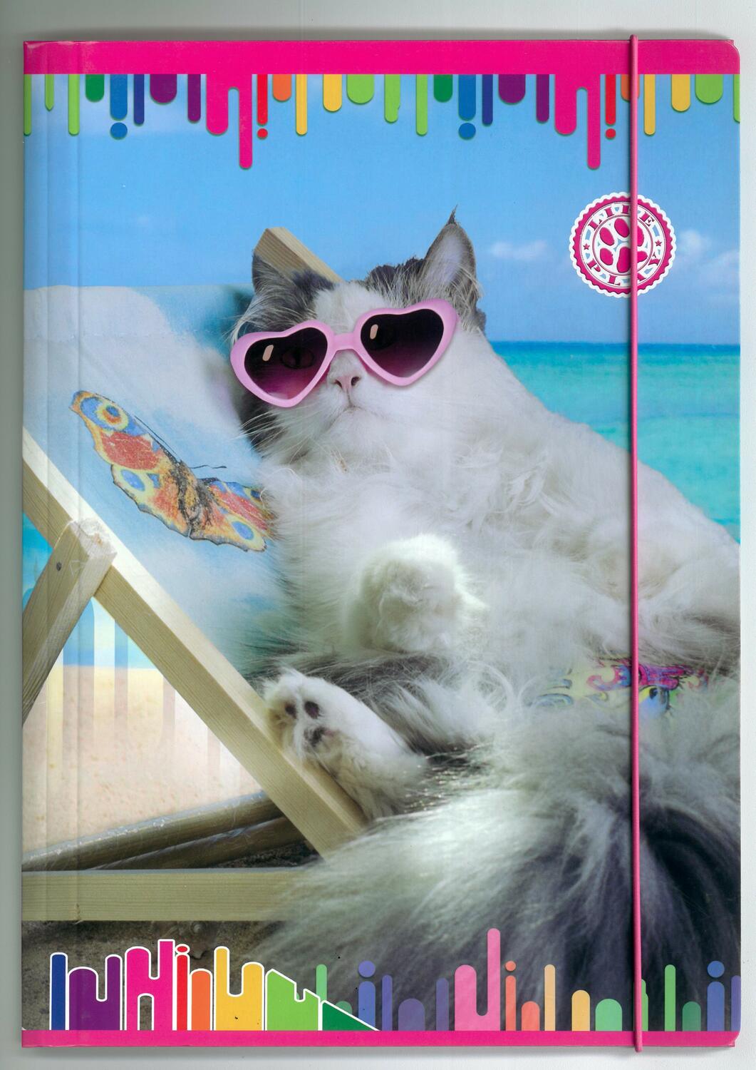 Cartellina a tre lembi in cartoncino con plastificazione lucida, chiusura con elastico.