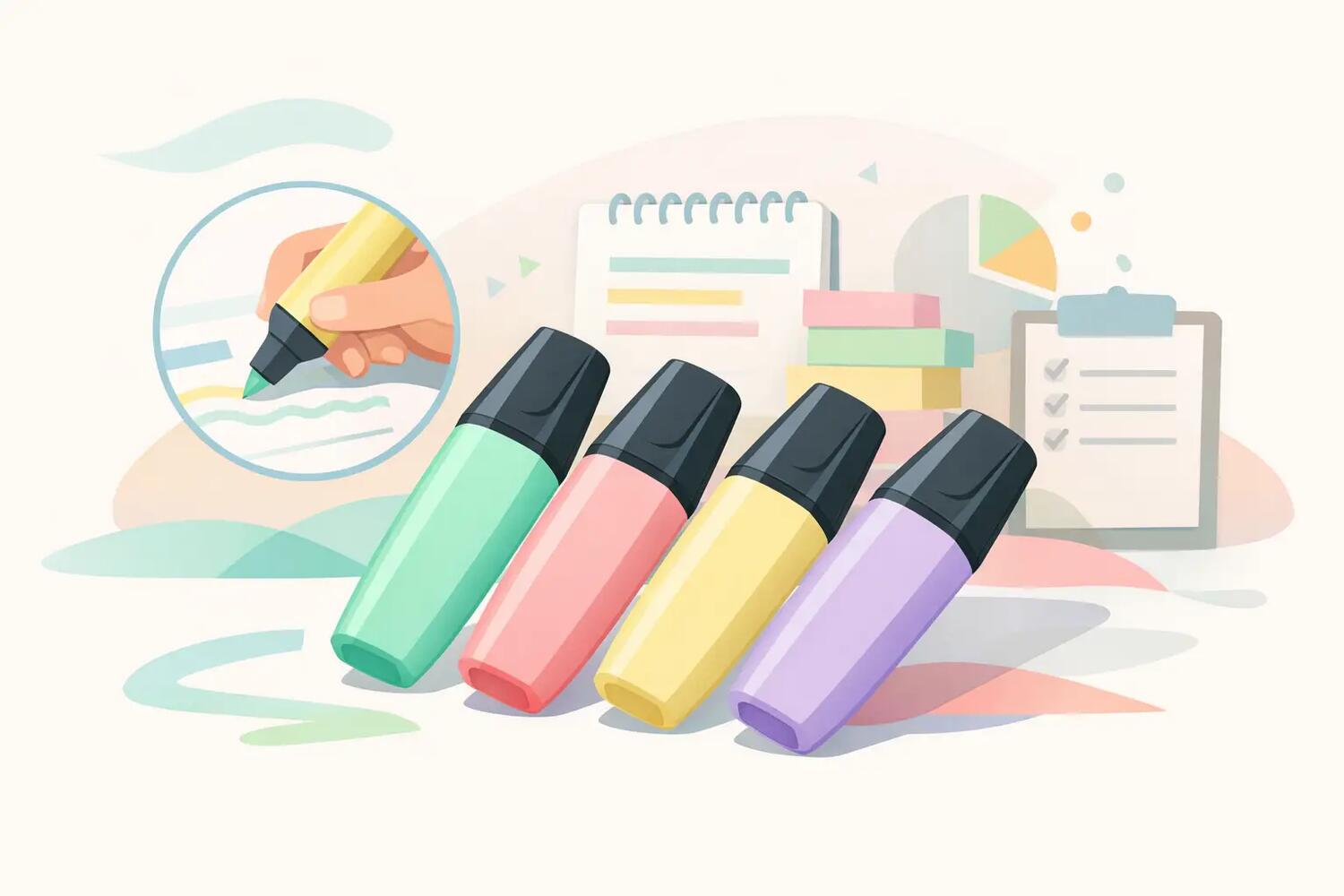 C’è poi un aspetto pratico da non sottovalutare. Gli evidenziatori pastel vengono spesso scelti anche da chi usa planner, bullet journal, quaderni di lavoro e agende condivise. In questi contesti il colore serve a distinguere, non a dominare la pagina. Un rosa tenue, un verde soft o un azzurro chiaro permettono di organizzare meglio senza appesantire.