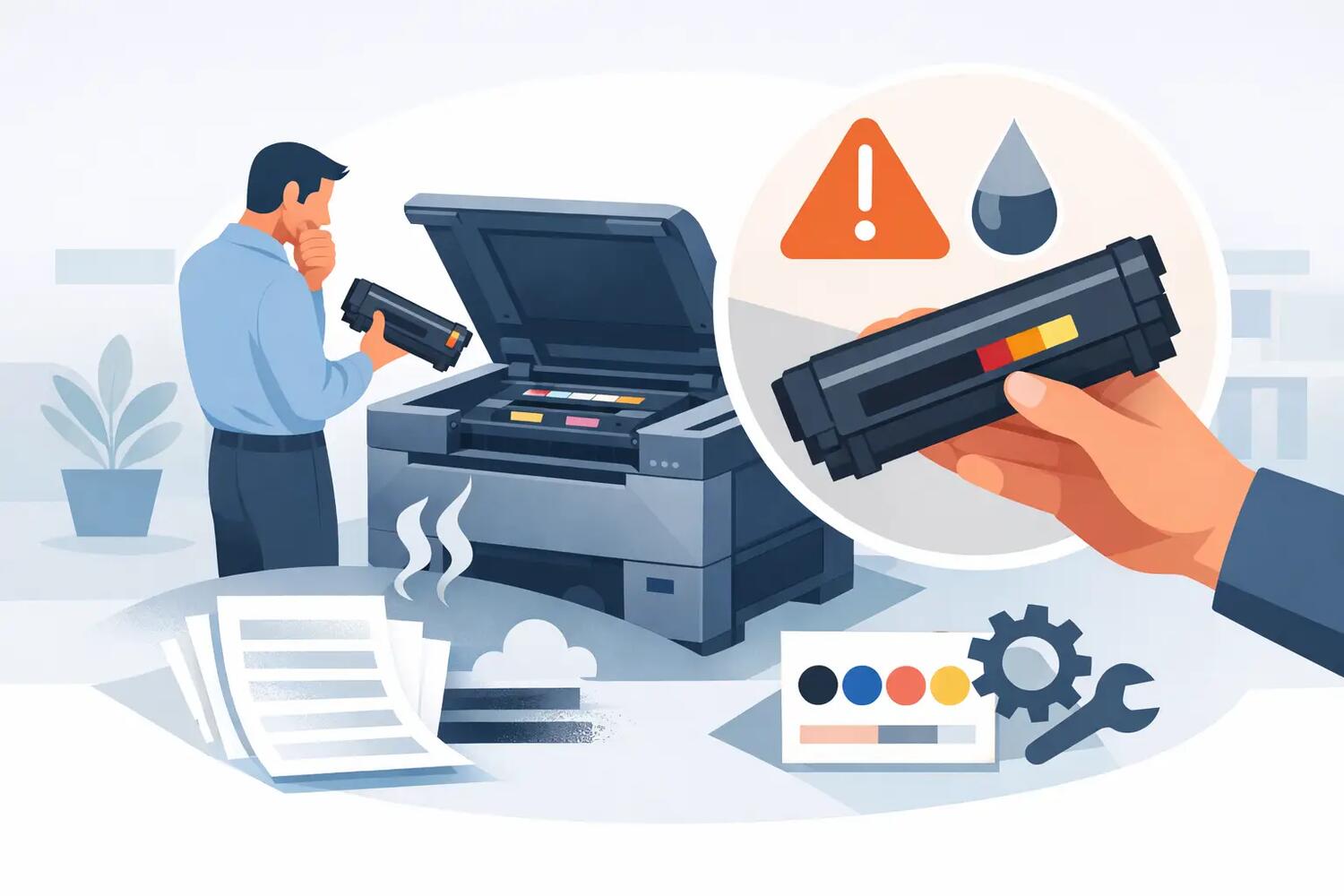 Uno degli errori più frequenti è confondere toner e drum. In alcune stampanti sono separati, in altre integrati nella stessa unità. Se sono separati, cambiare il toner non significa automaticamente sostituire anche il tamburo.