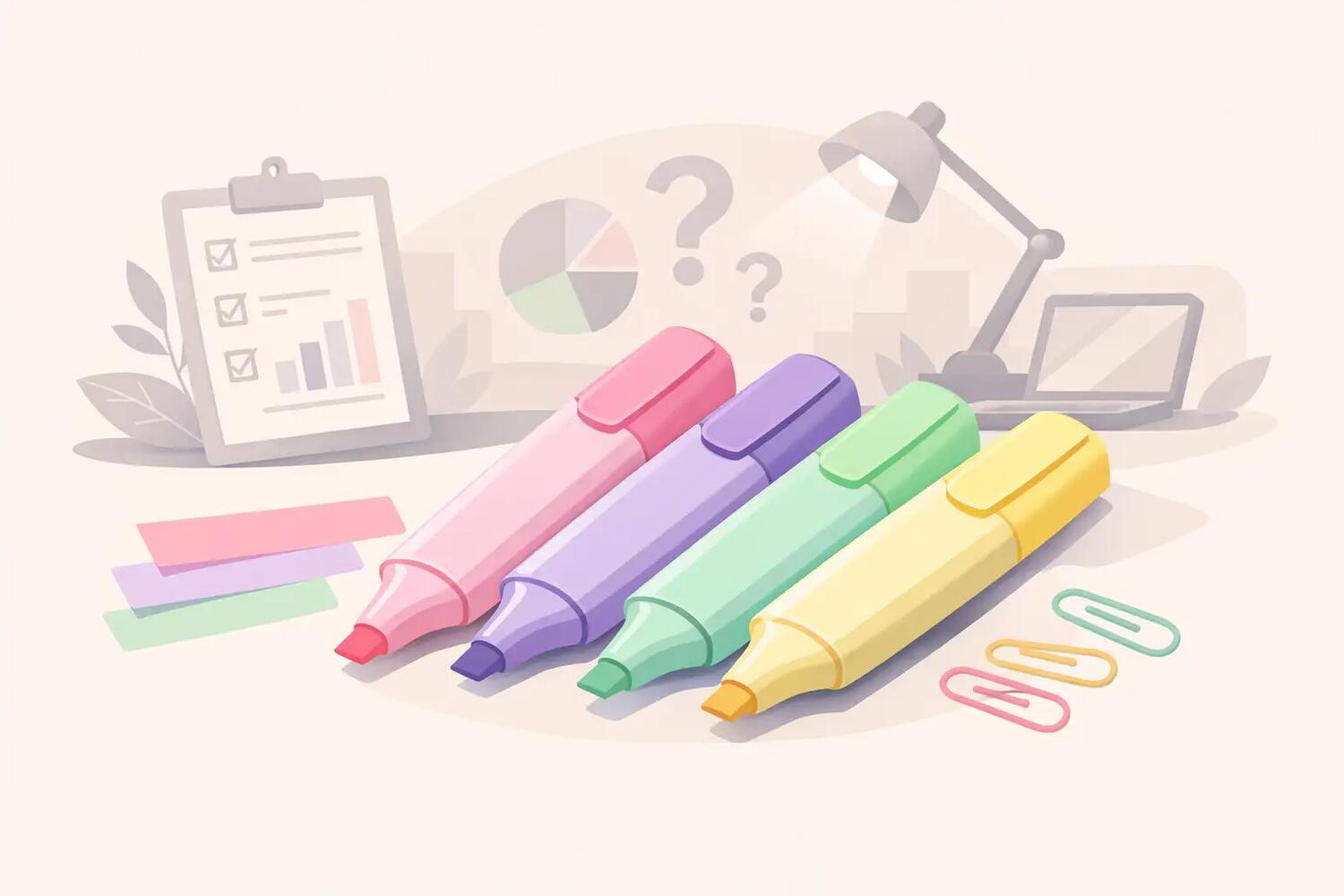 Prima di scegliere, conviene farsi tre domande semplici. La prima riguarda il supporto: libri, quaderni, fotocopie, modulistica o documenti stampati in ufficio. La seconda riguarda la visibilità desiderata: marcatura evidente o evidenziazione più soft. La terza è legata all’organizzazione: serve un colore singolo o un set per codificare le informazioni?