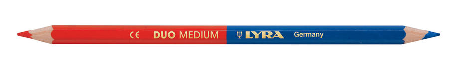 Duo Medium: matita esagonale bicolore (rosso/blu) sezione 7,6 mm, maxi mina diametro 3,8 mm. Lunghezza 18CM.