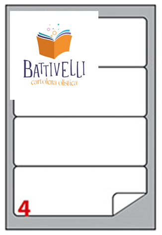 Confezione 100 fogli etichette pretagliate su foglio A4 in formato 190 × 61 – 4 per foglio