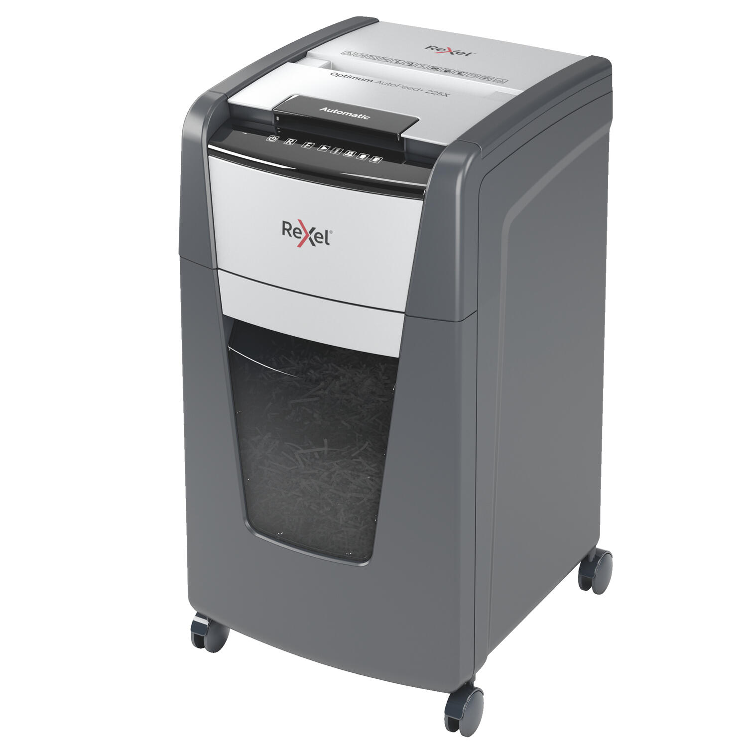 IL DISTRUGGIDOCUMENTI OPTIMUM AUTOFEED+ 225X CON TAGLIO A FRAMMENTI DISTRUGGE AUTOMATICAMENTE FINO A 225 FOGLI A4 (80 GR/MQ ALLA VOLTA, CON UN LIVELLO DI SICUREZZA P-4 (4X25MM. QUESTO DISTRUGGIDOCUMENTI AUTOMATICO PUO’ ESSERE UTILIZZATO SIA A CASA SIA IN