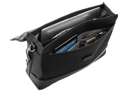 Cartella da uomo della linea “Easy Plus” caratterizzata dall’ampiezza degli spazi e dall’organizzazione interna a due comparti estremamente funzionale. La borsa è realizzata in tessuto poliestere antigraffio e antipioggia con inserti in PU e chiusura. È dotata di tasche porta computer 15,6" e porta iPad; il manico imbottito e la tracolla regolabile e rimovibile la rendono adattabile a qualsiasi necessità.