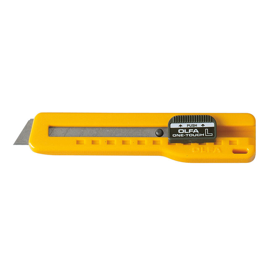 Cutter Olfa con lama da 18 mm corpo in metallo stampato rivestito in resina termoplastica ad alto spessore.