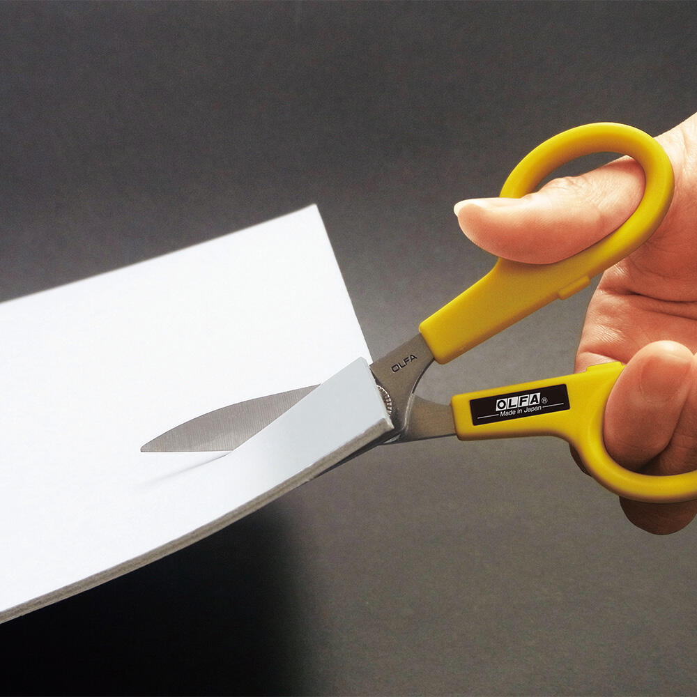 Forbici per usi professionali Olfa da 17 cm con lama in acciaio inox e dentatura antiscivolo.