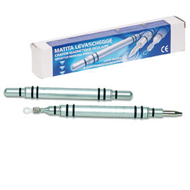 STRUMENTO PER LA RIMOZIONE DI SCHEGGE DI METALLO NEGLI OCCHI. DOTATO DA UN LATO DI UNA PUNTA MAGNETICA IN NEODIMIO, DI ECCEZIONALE FORZA DI ATTRAZIONE, CHE PERMETTE LA RIMOZIONE DI SCHEGGE FERROSE EVITANDO DI AVVICINARE PERICOLOSAMENTE LA PUNTA AL BULBO OCULARE. NELL’ALTRO LATO UN ASOLA IN NYLON ANTIABRASIONE PERMETTE LA RIMOZIONE DI SCHEGGE DI ALTRA NATURA. IL CORPO ED IL SUPPORTO DEGLI STRUMENTI SONO IN ALLUMINIO ANODIZZATO.LE GUARNIZIONI IN NEOPRENE GARANTISCONO UNA PRESA SICURA DELLA MATITA.